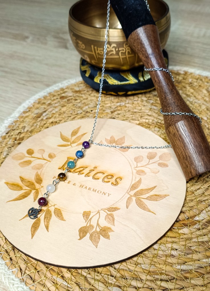 Cada colección tiene su esencia: desde los collares de los 7 Chakras, que armonizan cuerpo y mente, hasta los inspirados en la energía lunar, símbolo de ciclos, transformación y renacimiento.