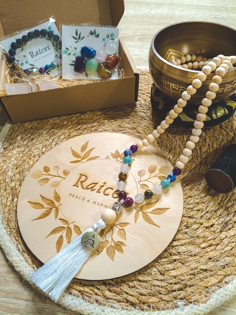 Cada cuenta simboliza un pensamiento consciente, una respiración o una intención, guiándote hacia el silencio interior.