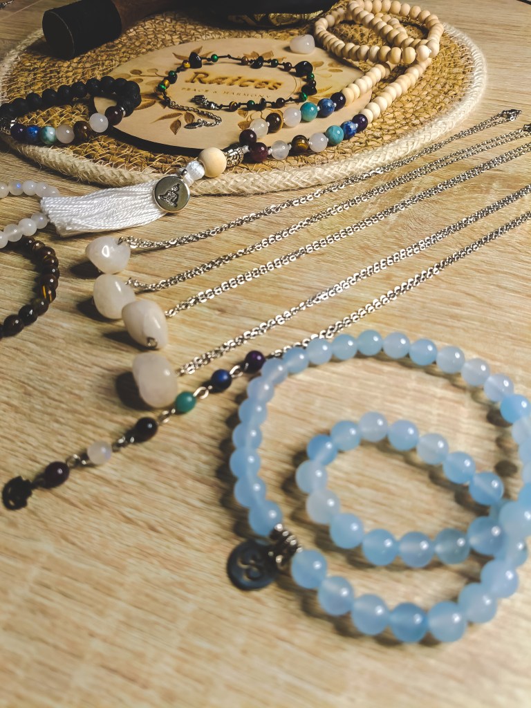Cada pieza nace desde la intuición y el cuidado. Trabajo con minerales naturales, creando amuletos que no solo decoran, sino que acompañan. Aquí encontrarás pulseras, Japa Malas y otras creaciones pensadas para conectar con tu energía y acompañarte en tu camino.